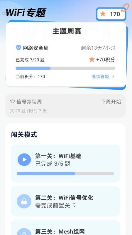 以闯关答题模式增添WiFi知识答题乐趣,用户可以在这里体验到充满趣味性的答题体验。