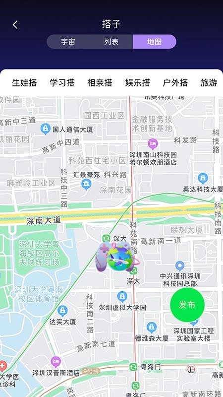用户可以在地图中查找定位显示的各种活动搭子,让用户查找搭子更快捷高效。