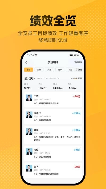 便于用户远程校准员工绩效,实现对更多门店员工绩效的实时校准,并能轻松记录。