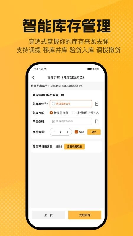 1、打开应用就可以对门店仓储来智能练货,轻松处理订单。