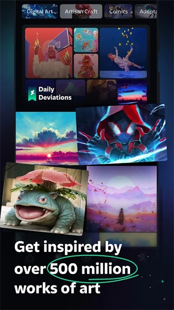 1. 打开DeviantArt App,便能看到里面存有大量创意非凡的作品。