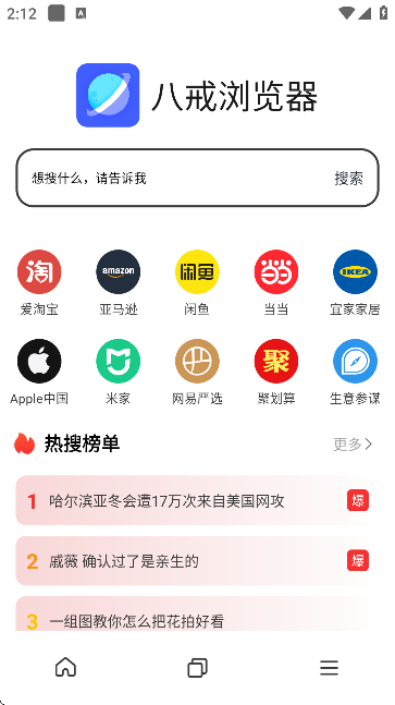 八戒浏览器强大的检索引擎,可以为使用者带来流畅、纯净的上网冲浪体验,与一般的浏览器相比本作体积更小、功能更明确,专注于搜索服务,而且也少了很多限制,其他浏览器上打不开的网页在这里都可以打开,无数丰富精彩的资讯消息等你来浏览,喜欢的小伙伴快来八戒浏览器试试吧。