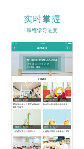 在线学习主要涵盖“幼儿教师继续教育的网络培训项目”以及“教师网络研修社区下各研修组织中的研修活动”的课程学习模块。教师可随时查看课程信息,在移动端学习后,学习进度能与PC端同步,方便轻松查看。课程待完成时会即时提醒,既智能又高效,使教师无论何时何地都能轻松看课学习。