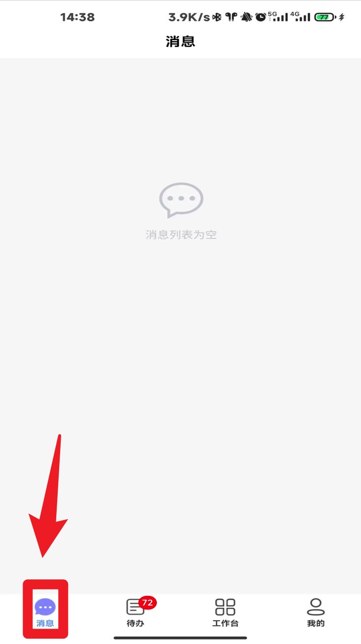2. 完成登录操作后,点击底部导航栏中的“消息”按钮,即可查看各类业务通知。该功能支持实时刷新,并具备未读提醒功能。