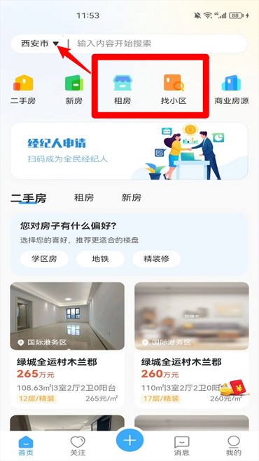 2. 借助筛选区域、价格、户型等设定条件,实现需求的精准匹配。