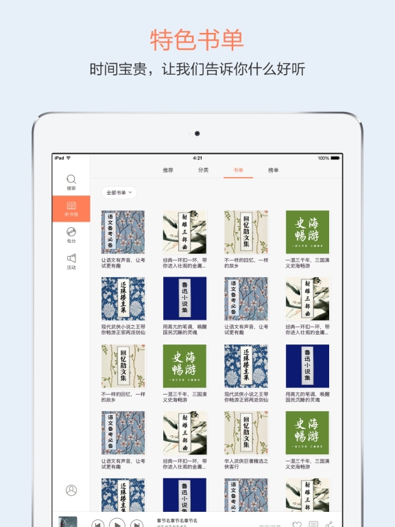 《百听听书HD》堪称一款顶级的小说阅读利器,其版本新颖,小说每日持续更新。同时,它还配备了极为贴心的护眼模式,用户开启此模式,就能有效呵护视力。它能全方位满足你全新的阅读品味,众多意想不到的新颖阅读链接,各类好小说更是一应俱全。在此,读书体验堪称卓越,丰富的有声小说资源,可满足不同用户的多样需求。即便你不方便使用手机,也能借助这些有声书,拥有极佳的获取知识的途径。所有类型的优质小说皆已备好,让你毫无压力,尽情畅享阅读之乐。
