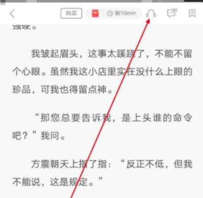 2、在小说的阅读界面,我们在点击手机的屏幕中心,然后我们在右上角找到“耳机”的图标并点击。