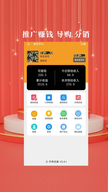 邀请好友免费注册成为会员。好友不仅能享受优惠节省开支,与此同时,您还能赚取佣金。无需在朋友圈进行打扰式推广。