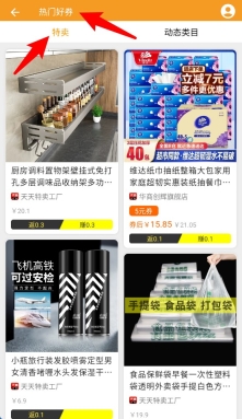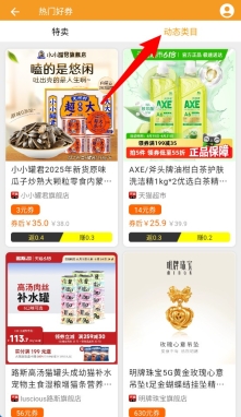 3、切换到“动态类目”页签,呈现日用、食品、美妆等各类精选的限时优惠商品。
