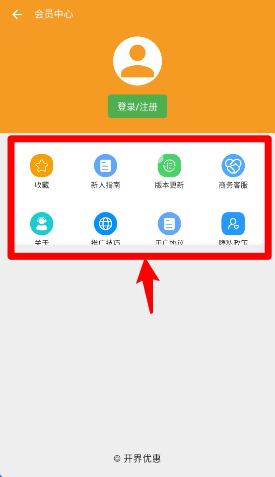 5、在会员中心页面,设有收藏、新人指南、版本更新以及协议隐私等功能的入口。