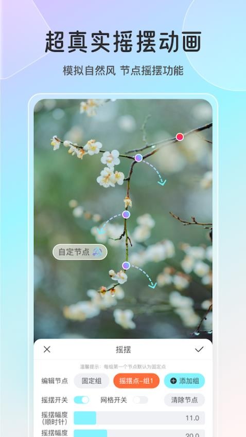 3、图片编辑:轻松编辑图片,调整亮度、对比度,或通过移动镜头节点,制作出如电影般的视觉效果。