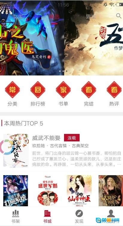 【精选书籍】 女频、男频、出版小说以及免费小说,均可随意阅读。
