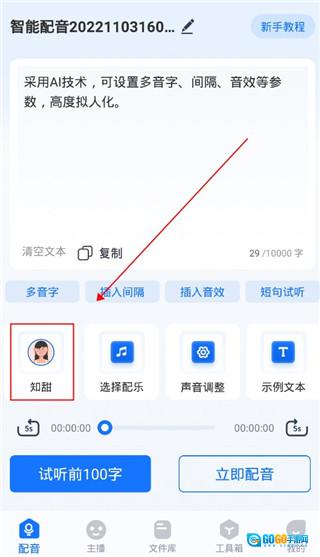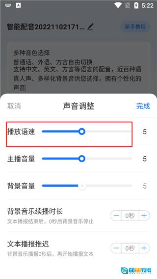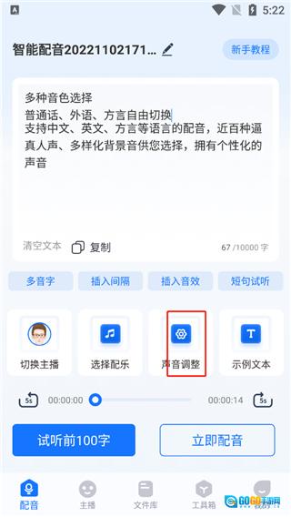1. 智能配音模式下,多音字、间隔、音效等各项参数皆能自由设定。