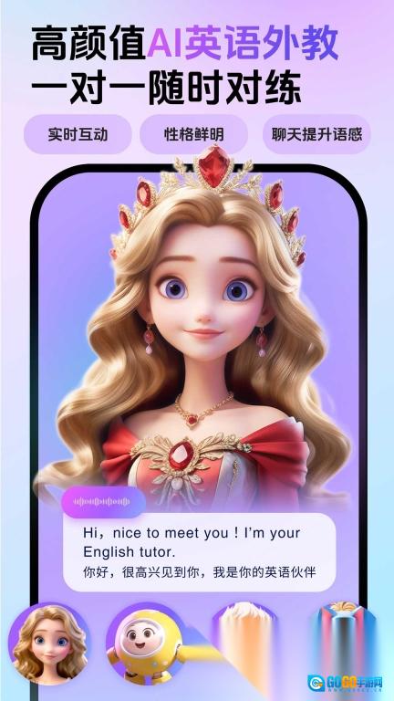 2. 互动式AI智能陪练,借助24小时不间断的实时互动聊天,搭配场景模拟实战,助力孩子实现飞速进步。