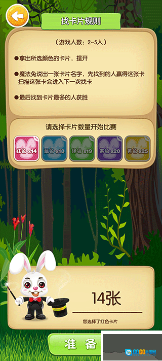 4、寻找卡片,挑选同种颜色的魔法卡并点击准备,此时魔法兔会说出其中一张魔法卡的名字,扫描该魔法卡就能顺利过关。