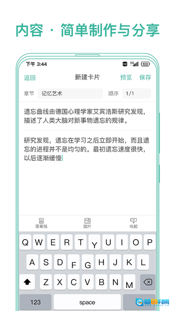 1. 拥有将知识制作成文字、图片、声音形式卡片的编辑功能。