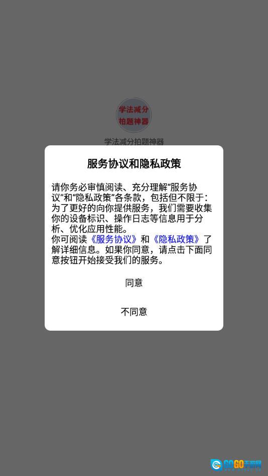 1. 安装软件完毕后进行打开操作,同时同意服务协议与隐私政策。