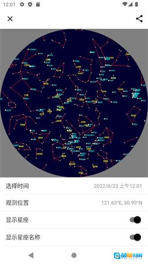 5、轻点右上角的标识,即可查看各星球的升落情况。