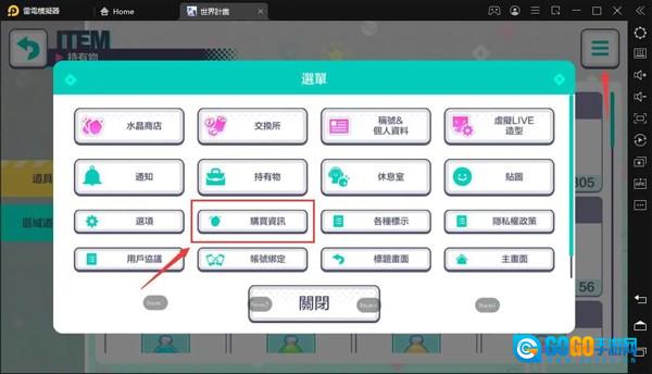 ※若想查询水晶的持有状况,可在「选单」→「购买资讯」中进行操作。