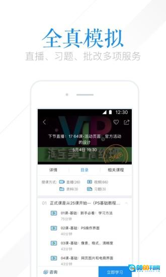 5、【设计领域课程】所涉课程包含UI设计、室内设计、游戏美术设计、平面设计以及插画动漫等。同时,还提供来自著名机构的培训,像BIGD大梦想远程培训、H2学院、拓者设计学院等。