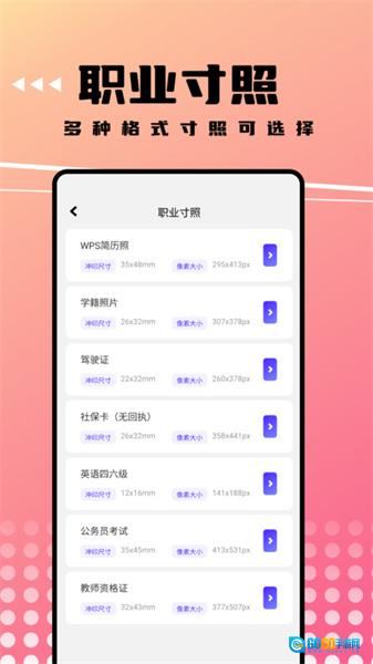软件提供了多种不同的证件照尺寸和背景颜色,用户可以根据自己的需求选择不同的尺寸和颜色,非常方便;