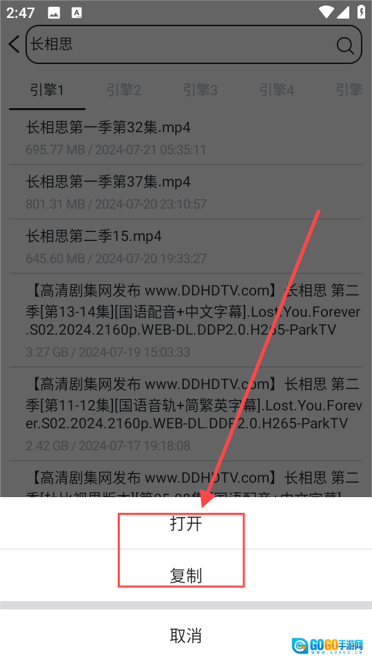 4、找到所需资源,点击后,既可以选择复制下载地址,也能够选择直接打开。