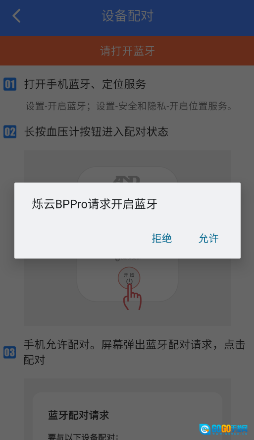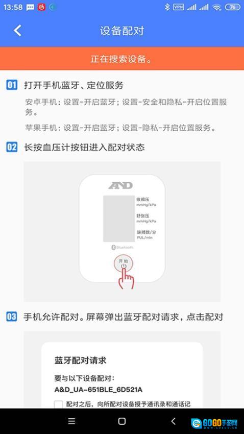 2. 进入配对界面,打开手机蓝牙功能,选择相应的设备名称,完成连接配对。