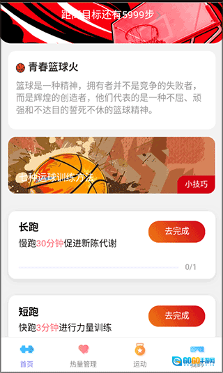 1、第一步,进入首页后,就能开展运动打卡以及篮球训练。