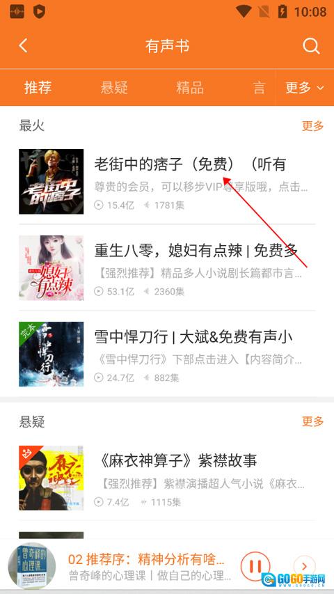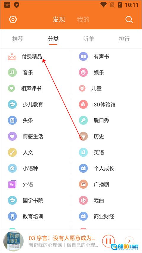 随后,在新打开的页面里挑选你想要收听的精品内容。