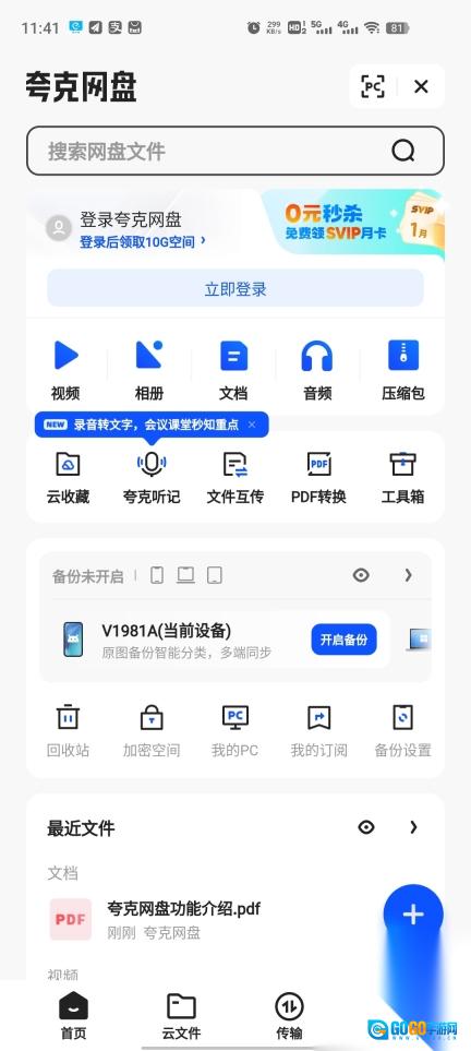 快来登录夸克网盘,一键开启备份功能!无论是微信、QQ 文件,还是桌面文件、文档资料、下载内容,都能轻松备份,还支持指定文件夹备份哦。