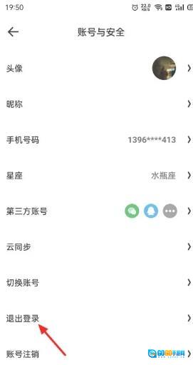 3、进入账号与安全界面后,点击“退出登录”选项。