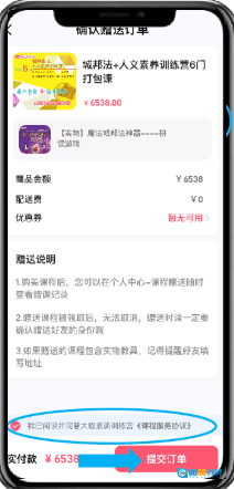 2. 进入“确认赠送订单”页面,点击“提交订单”完成支付。