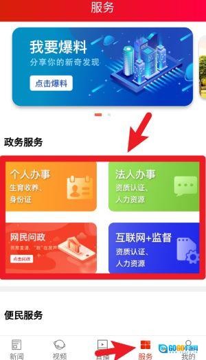3、进入“服务”页面后,能够选择“个人办事”或者“法人办事”,通过线上办理政务服务事项,有效提升办事效率。