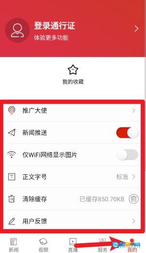 1、在“我的”页面,设有登录账号、设置推送提醒、清除缓存以及切换网络图片显示等功能的操作入口。