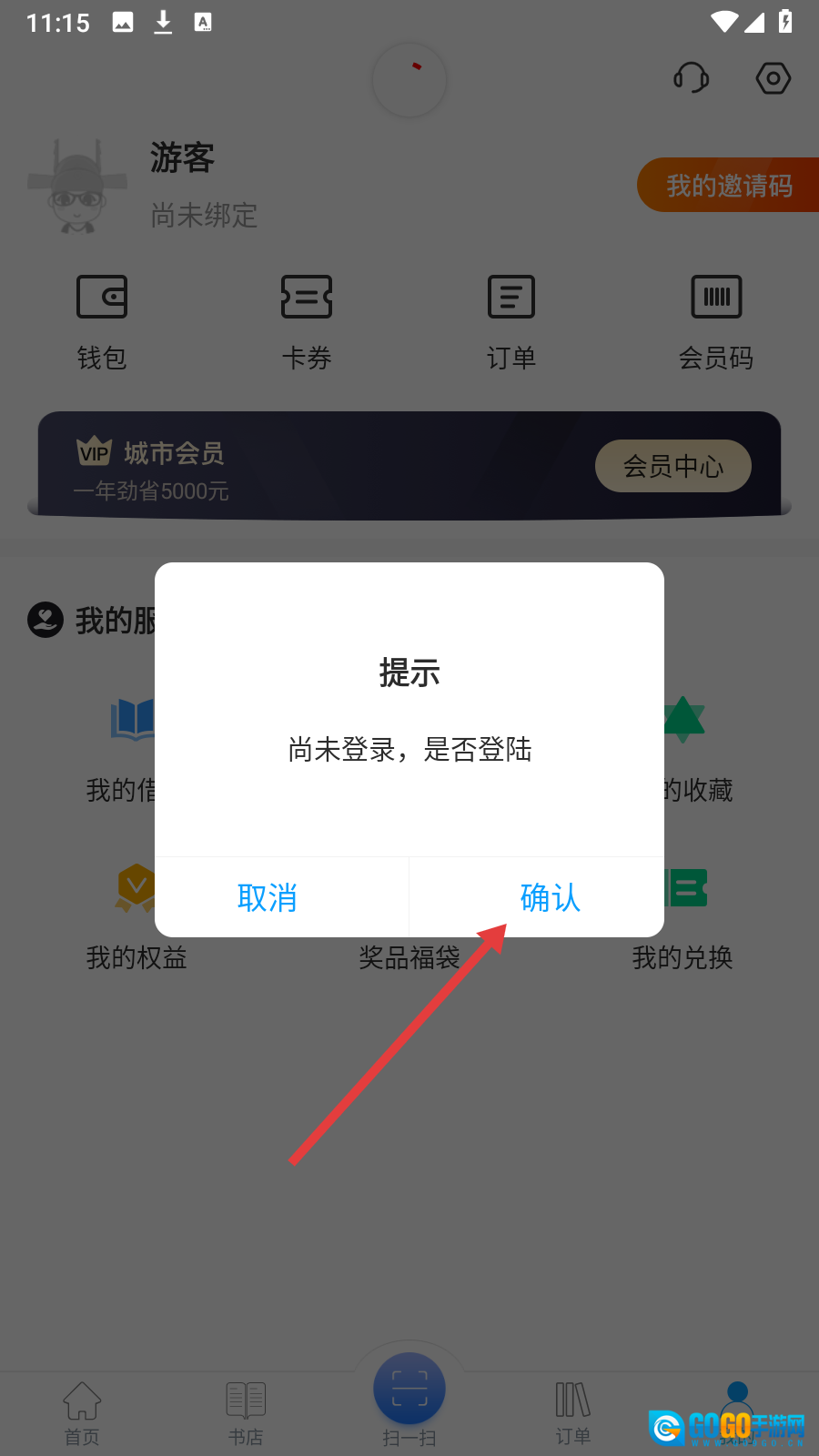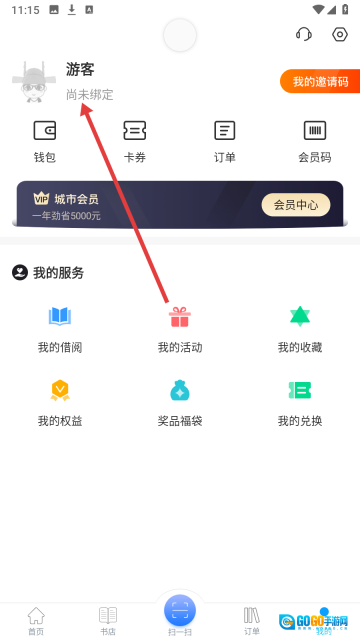 2. 在个人中心点击【游客尚未绑定】,便会触发登录提示弹窗。