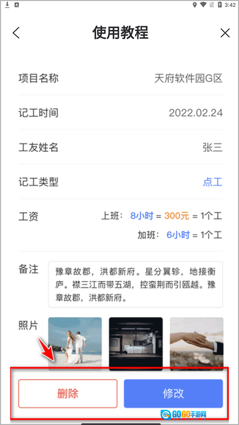 5、最后一步,对记工数据进行查看、修改以及删除操作。