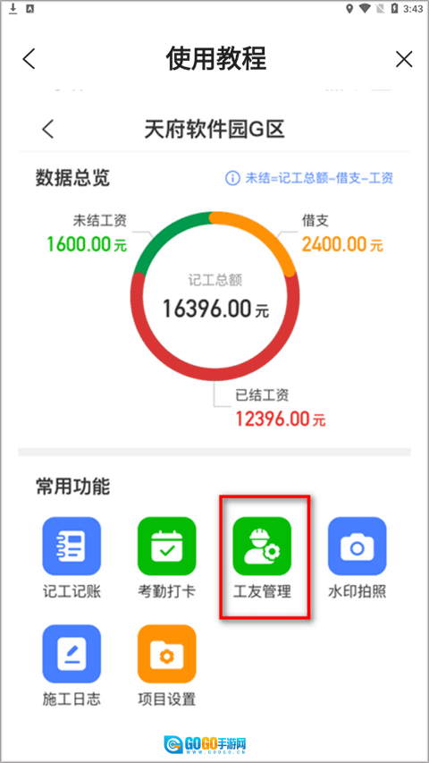 2. 在项目工作台里寻找到工友管理,然后点击进入。