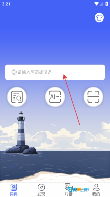 1、此为一款阿语与汉语相互翻译的软件主界面。界面中间设有搜索框,在此你既能输入阿语,也能输入汉语。界面下方还排列着几个功能按钮,它们能够满足各类翻译或学习需求,助力你迅速开展与语言相关的操作。