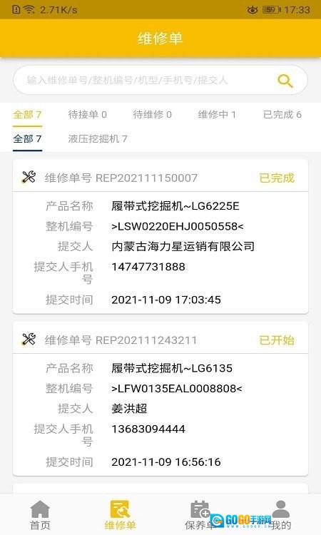 2、龙工e管家作为一款挖掘机维修服务平台,使用极为便捷。当贵公司的挖掘机出现故障,只需在该软件上进行报修,便会有专业人员与您联系并提供上门服务。整个流程皆在线上操作,省时省力。