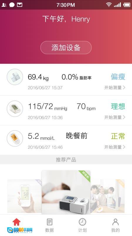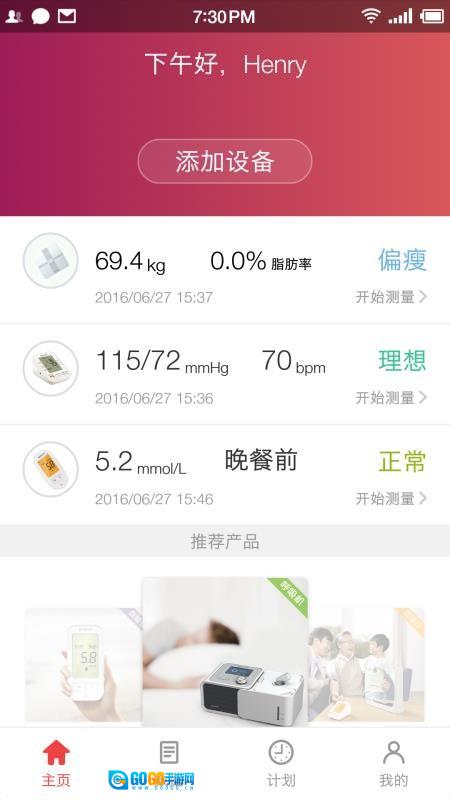 首页将向用户推荐若干优质智能健康产品,用户可按需选择购买。