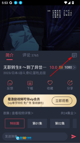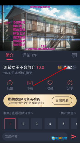 1、点击进入播放页面,再点击箭头所指的按钮。