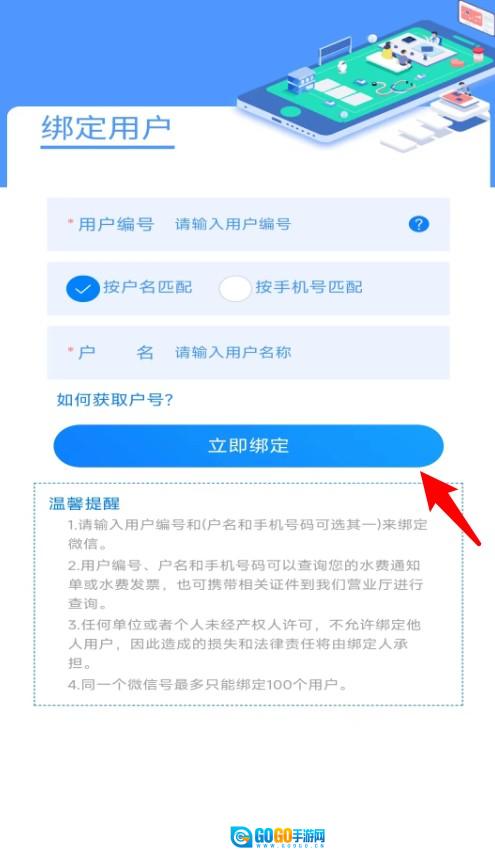 4、在填写用户编号和户名之后,点击“立即绑定”,即可完成户号绑定操作。