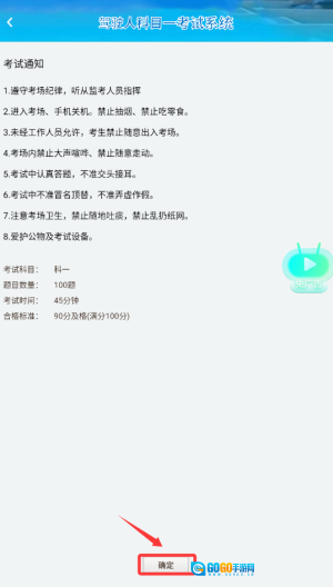 2、轻点“开始考试”按钮,系统便会自动生成一套完整的科目一或科目四仿真试卷。