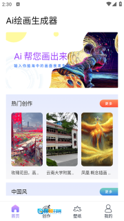 AI绘画绘图大师作为一款AI绘画生成器,能够依据软件内用户的描述,快速生成多种风格的绘画作品,像中国风、热门漫画、黑白写意以及像素风等皆能实现。此外,软件中还备有大量壁纸,供用户挑选使用。