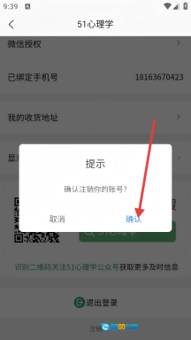 4、当弹出提示对话框时,点击【确认】按钮,即可完成账号注销操作。
