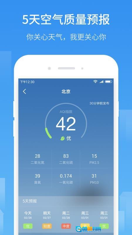 2、实时刷新各大城市PM2.5与AQI指数的预报信息,关注天气状况与健康生活。