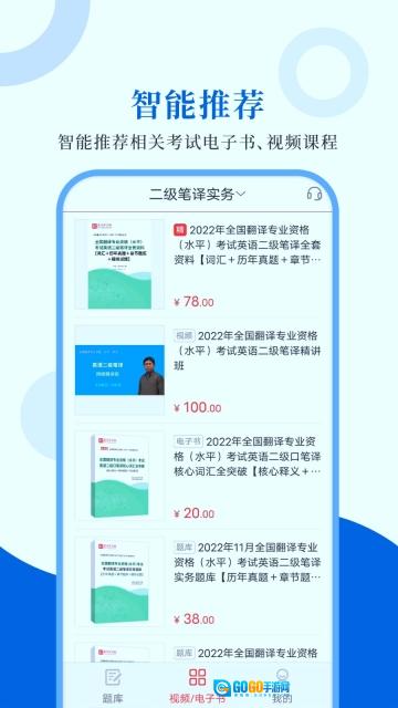 1. 智能化推荐各类考试的电子书,多种版本的电子教材可供随时学习。