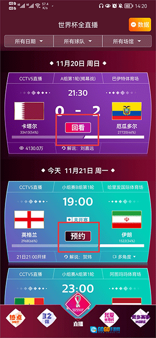 2、进入之后,用户能够对已经播出的赛程进行回放观看,也可以对即将开启的赛程进行预约。