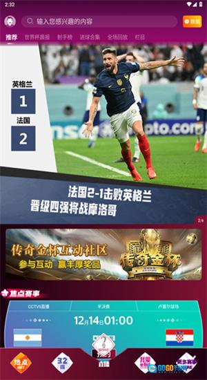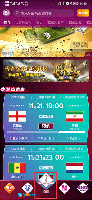 1. 开启卡塔尔世界杯直播,于首页界面点击下方的直播选项。