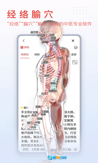 3、穴位可呈现全三维的经络巡行路线以及经穴。